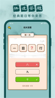 3、自由闯关和答题冒险,训练玩家的思维能力和丰富成语知识。