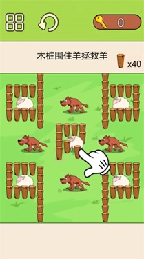 这是一款考验益智力的休闲手机闯关游戏,很多限时关卡等待去挑战和通关,在有限的木桩数目下,完成更多对小羊的保护,避免它们被大灰狼吃掉哦。