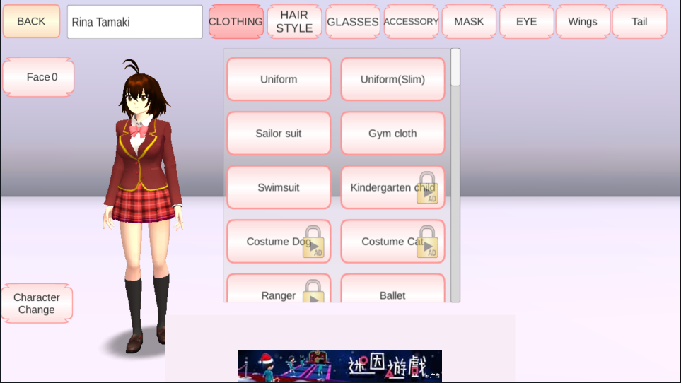 1、日系高校背景的角色扮演,体验女高中的生活。