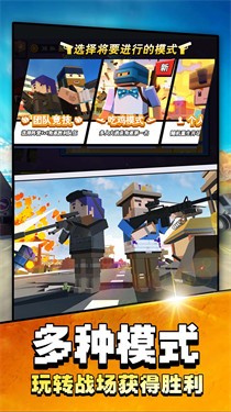 酷炫的战场画面造型,让你在吃鸡大战场中体验热血的吃鸡竞技,魔性的画面场景,搭配上各种地图探索玩法,以全新的方块像素为主,吃鸡大战场中的射击体验更加轻松。