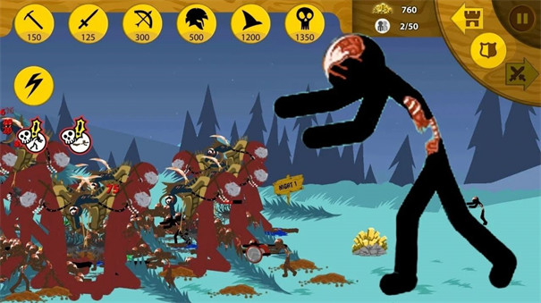 5、当经济足够时,训练火柴人剑客,登上战场进行对战;
