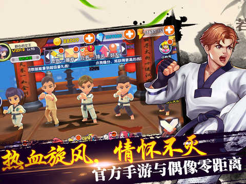 2、由热播的同名电视剧改编。本作源自著名作家“明晓溪”的同名小说,是湖南卫视官方偶像剧唯一授权的手游!本作100%还原剧中的经典情节,带玩家身临其境体验跆拳道的格斗激情和主角们刻骨铭心的爱情故事~快来加入游戏体验吧~