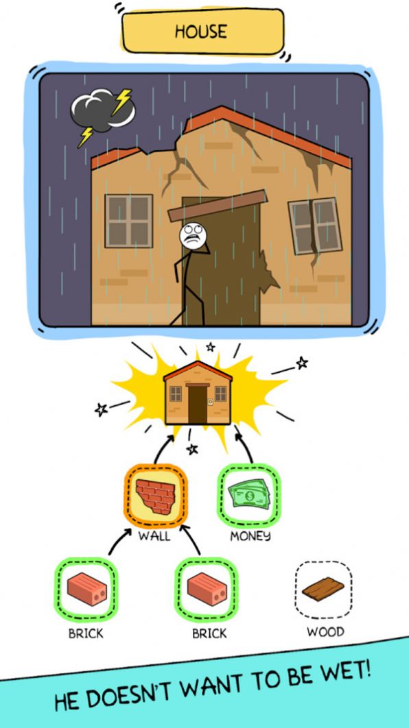 游戏的主要玩法就是通过合成道具来解决关卡中的谜题游戏中玩家可以尽情发挥自己的想象力来进行合成;游戏的整体画面还是比较不错的整个游戏通过卡通风格的简笔画画面呈现了一种轻松的游戏氛围;