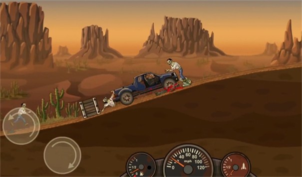 1、在末日沙漠中,疯狂撞击僵尸,将它们击败。