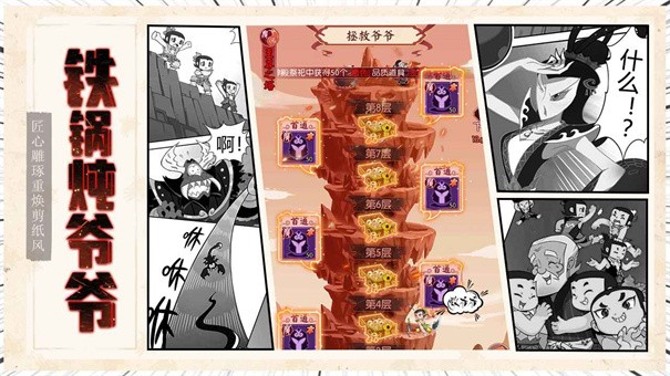 1、剪纸风格的游戏画面,延续经典的动画场景;
