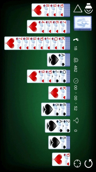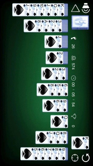 当移动形成同一花色由K到A顺序的一组牌时,这组牌会被自动移除整理到界面的顶部,同时获得分数奖励。当游戏中的所有牌都被成功收回,那么游戏就过关了!