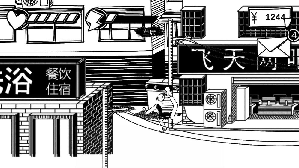 1、以打工为核心,画面场景全采用黑白风格设定!