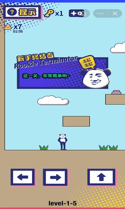 一款休闲益智的小游戏,画风搞笑独特。在游戏开始后,玩家需要操控角色到达终点即可闯关成功开启下一关卡。关卡的难度会逐步增加,玩家需要开动脑筋,而且每个关卡界面都会有相应的小提示,玩家可以仔细观察用心分析,争取一次过关哦!