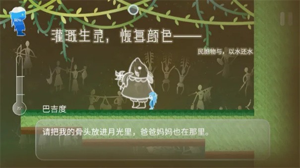 ReturnWatertoWater单机版是一款非常好玩的横版冒险闯关游戏,游戏的画面超级精致,唯美清新的画风,每一幕都是美丽的风景,在ReturnWatertoWater单机版这款游戏中,玩家将会扮演小女孩Chole,拥有水、冰、气三种形态可以自由变换,对应着流动、跳跃、飞行三种技能,跟随Gene的声音,踏上全新的冒险之路。