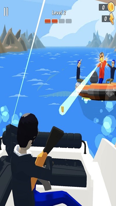 这是个很好玩的射击闯关游戏,在水上作战难以保持平衡,面对着湍急的水流和众多的不稳因素,在你的血条结束之前将所有的敌人都击倒就可以获得游戏的胜利了,这对于瞄准射击的难度更大,并且你还要躲在狭小的游艇中来规避攻击,尽量不要让自己受到一点伤害。
