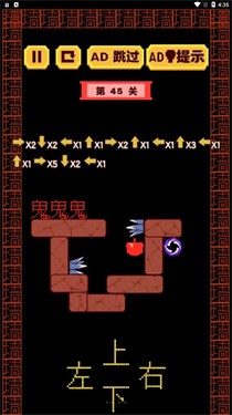 这是一个文字构成的世界,墙体都是“墙”字,敌人也用了“鬼”字代替,玩家需要在迷宫大解谜游戏里,灵活操控角色去移动闯关,吃掉关卡中苹果才算成功哦。