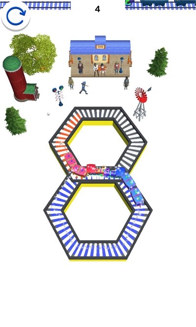 1、一款轻松有趣的休闲火车游戏,点击屏幕发动彩色火车,