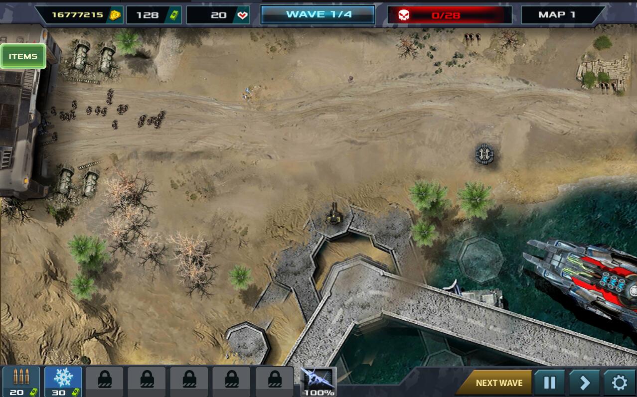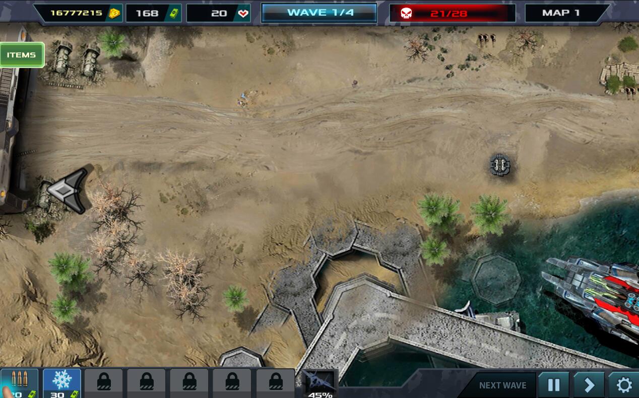 2、属于塔防战术的游戏类型,除了在最佳的位置构建良好的炮塔和恰当利用各类型武器的最佳特性优势以外,玩家也要分析敌人的攻击方向,完善自我的战术和战略思维,总是准备与敌人的突然袭击改变适合的策略。