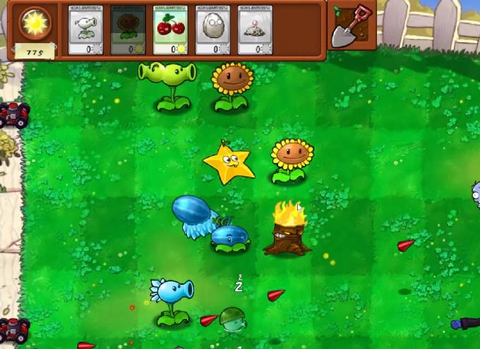 刚开始我们要先放攻击型豌豆,放在游戏道路那里的,进行攻击僵尸。