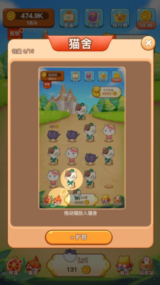 3、招财猫咪升级,而招财猫升级之后可以帮助玩家你在同一时间内获得更多金币。