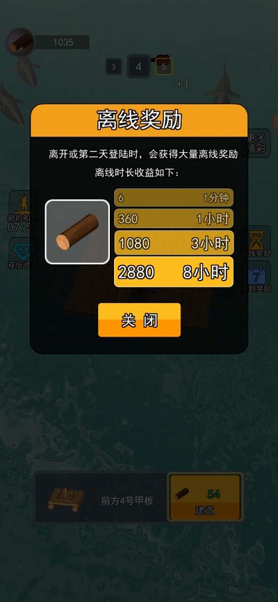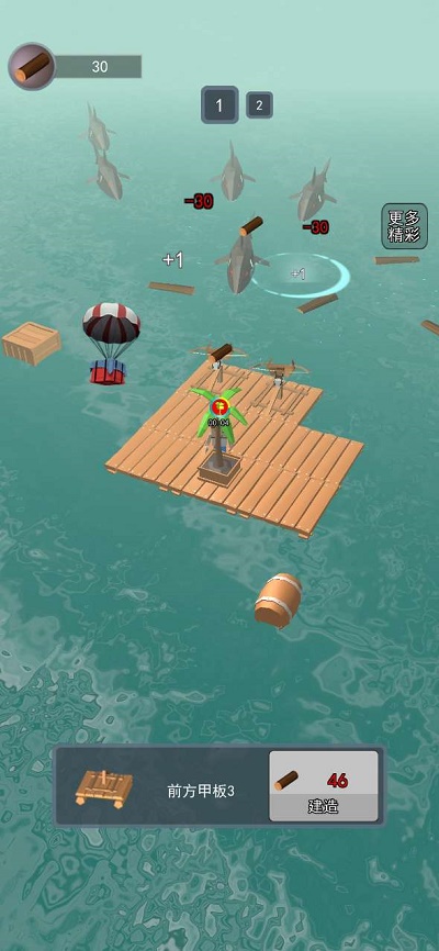 3、木筏升级,让你可以轻松升级自己的木筏,木筏越大,能够装下的物资就越多,功能就越多。