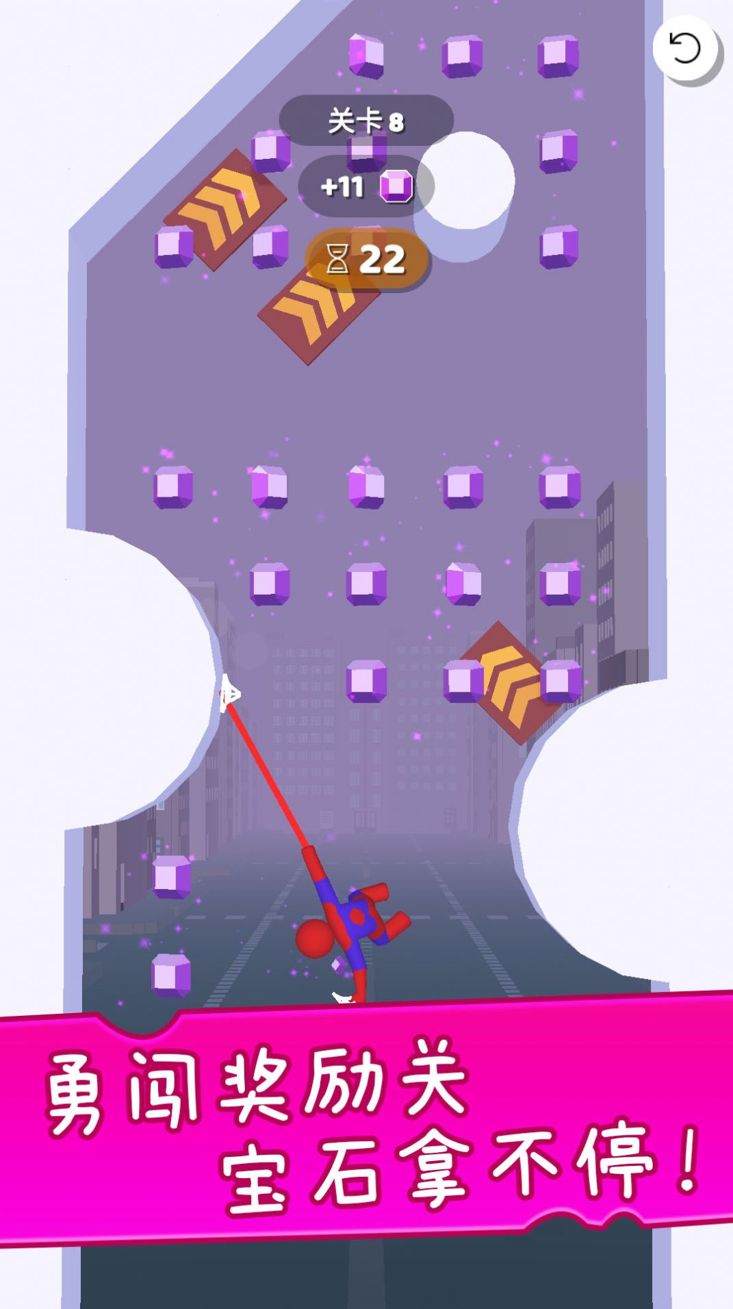 1、轻松有趣的挑战模式,你可以选择合适的绳索,在这里极致畅快的移动。