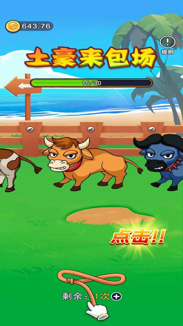 土豪来包场这款游戏和街机上的套牛是一模一样的玩法,但是不用买币花钱,免费参与,玩土豪来包场还有红包可以拿,在手机上也可以这么的刺激,就像小时候在街机室看别人甩套子那样的精彩。