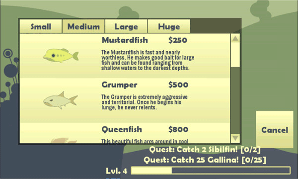 4、获得一定后,你可以在商店购买渔具,这样你的鱼钩能抛到更远的地方,钓到更多的鱼。