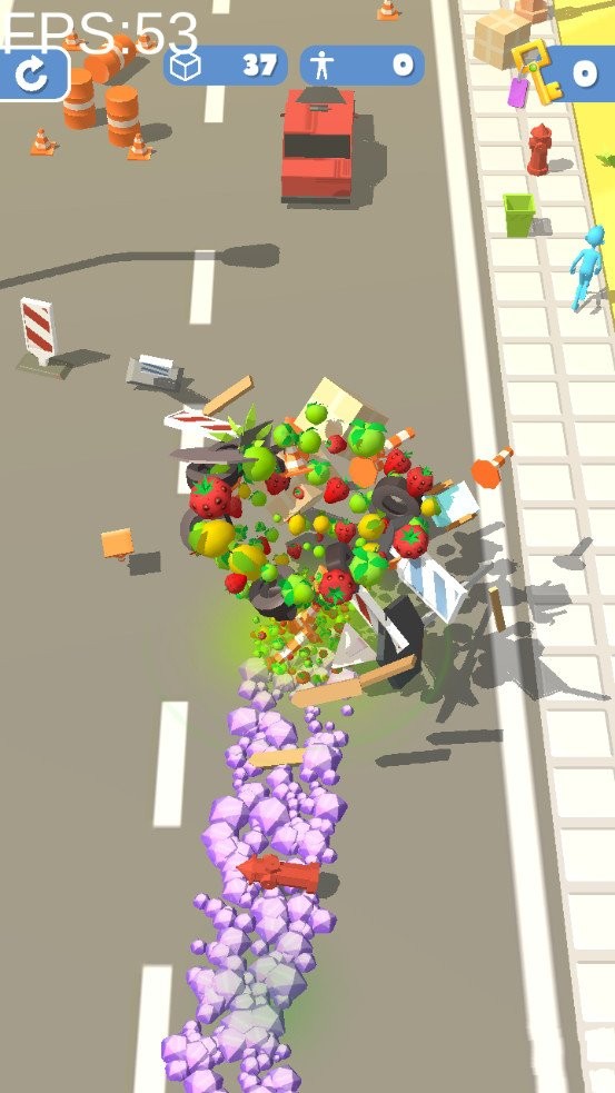 2、不停吞咽,让自己更暴力,破坏路上的一切,游戏玩法很有减压。