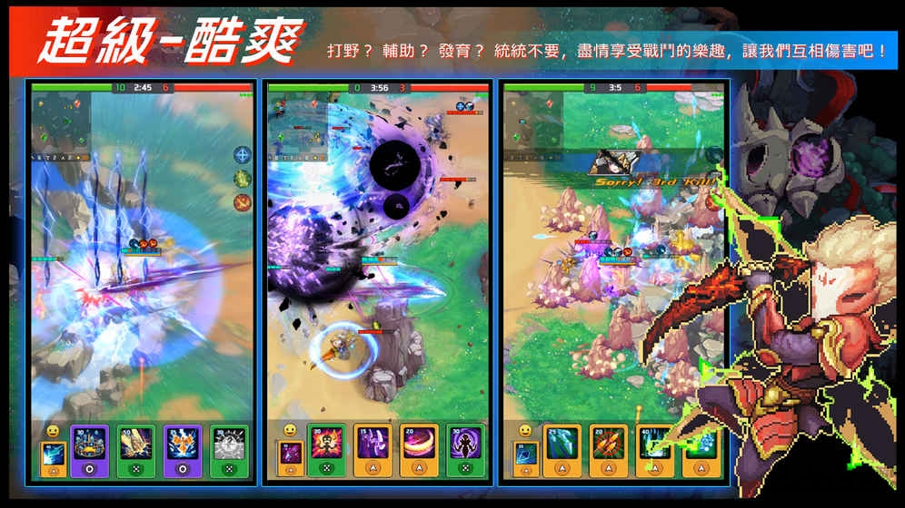 非常精彩的像素风3V3对战手游,游戏玩法刺激,游戏中玩家可以自由的选择模式进行对战,随机拾取技能,击杀野怪助战人,融合了多种元素于一体,为玩家带来最精彩纯粹的moba竞技快感!