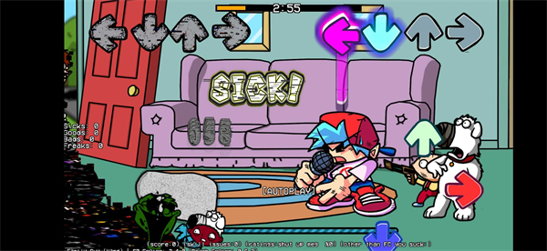 错误化恶搞之家天盛1.5是一款全新改版模组的手机音乐节奏游戏,在原作FNF的基础上魔改内容,并且添加全新角色以及错误恶搞图标,增加了很多游戏时的趣味性。错误化恶搞之家天盛1.5手机版小巧且玩法很多,各种音乐BGM应有尽有,细节操控人物跟随BGM的节奏舞动,完成种种挑战来获得对应积分。