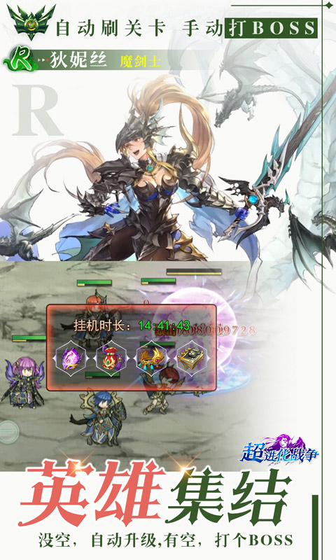 《超进化战争》是一款高度还原的,集挂机、卡牌于一体的H5游戏,无需下载即可轻松玩转历代人气主角,独创的战棋挂机玩法必将带给你不一样的挂机体验。