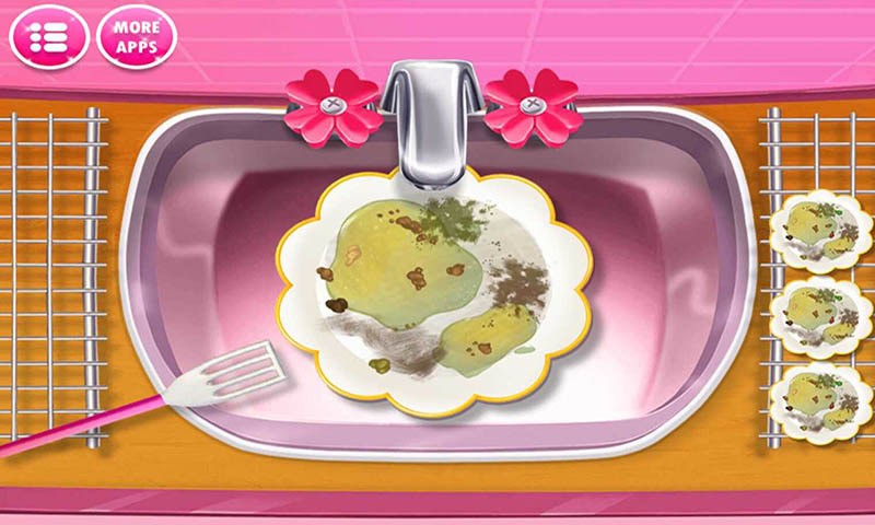 2.厨房清洁:厨房太脏了!让这个可爱的公主通过将厨房容器和罐子安排到适当的位置,清理蜘蛛网,固定水管,固定灯泡,丢弃腐烂的水果,蔬菜和其他被宠坏的食品到垃圾箱,擦拭地板来帮助清理,通过粘贴可爱的磁铁装饰冰箱。
