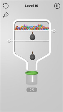 2、游戏中的小球和炸弹具有不同的特性,玩家需要巧妙地运用物理规则和策略来解决关卡中的难题。