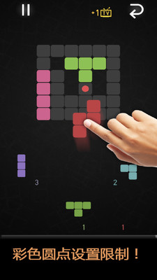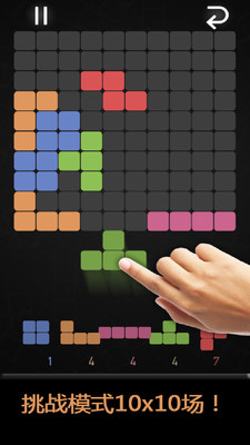 将块移动到有限区域中的自由空间。在轻轻触摸之前旋转块。使用指定的块填写整个受限字段。一个金块将永远拯救。通过关卡场和块总是会改变在街机模式下你必须用随机块填充一个大的场。