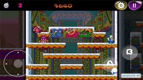 2、玩法相对简单,但也很有趣,玩家需要控制两个雪人兄弟完成各种任务和挑战。游戏中的地图非常大,有许多隐藏的关卡和道具等待着玩家去发掘。玩家需要通过各种跳跃和攀爬等动作来完成任务,并且还可以通过收集金币来升级自己的技能。
