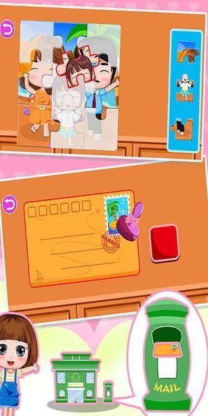 2、可以去邮政局为自己的亲人寄电子邮件,还能开启拼图图片游戏玩法。