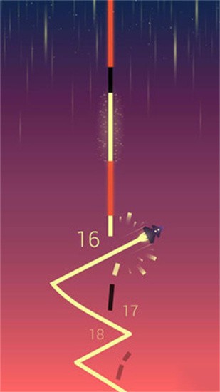 你需要驾驶着只属于你的火箭在这里来一场奇幻的冒险之旅,这里有三种不同颜色的线条,橙色,黄色,黑色三种不同的颜色,当你的火箭碰到三次黑色的线条,你就游戏失败了,需要再一次挑战,火箭碰到黄色的线条可能会有一些神秘的惊喜哟。