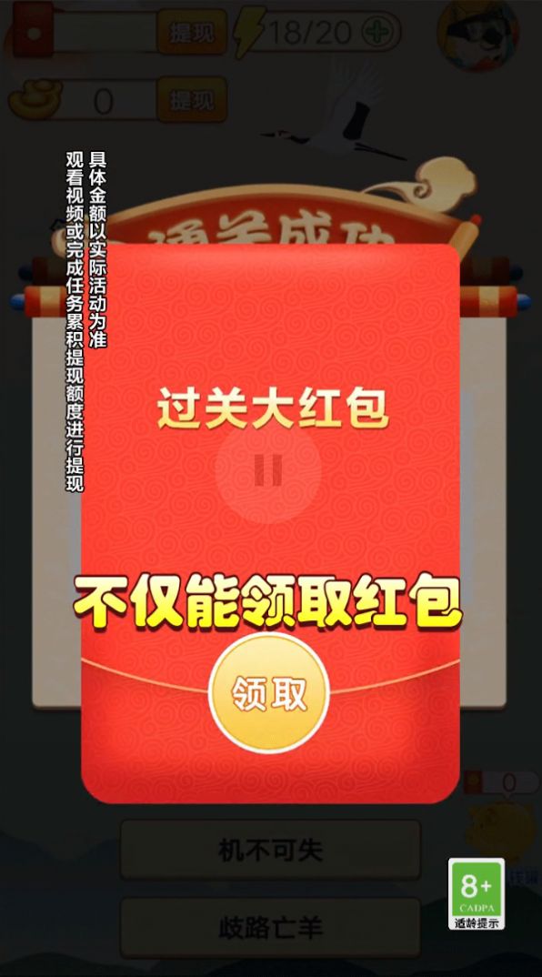 2、完成关卡游戏,你可以获得丰厚的奖励,还有惊喜大红包等着你去拿。