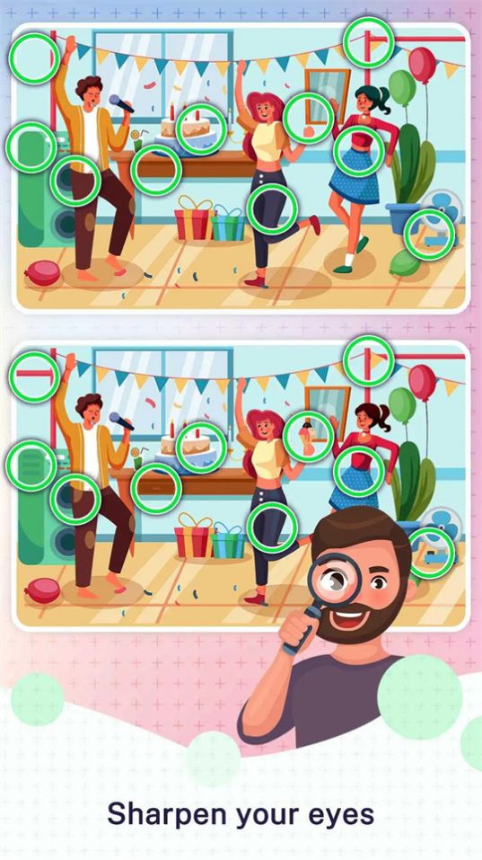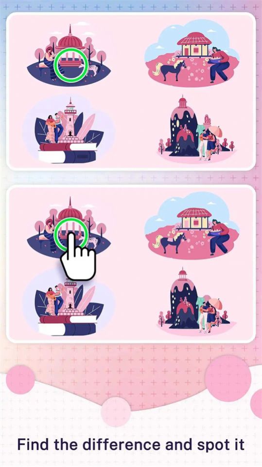 差异找出所有是一款考验眼力的找茬游戏,测试眼睛,玩家需要找出两个看似相同的图像之间的所有差异,具有不同级别的挑战,差异找出所有无疑是不错的选择,从简单场景到复杂场景、颜色或位置等不一样的变化,获得丰富的道具奖励。