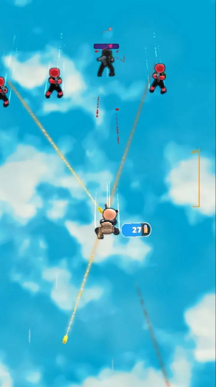 玩家需要控制小小空降兵飞行同时使用手中的武器进行射击避免碰撞障碍物挑战难度。提供组队模式玩家可以邀请好友一同组队挑战。通过组队可以获得更多游戏奖励增强协作能力。玩家可以通过游戏获得奖励然后将其用于打造自己的专属装备提升自己的战斗能力。
