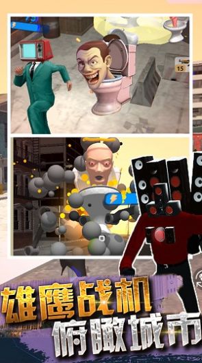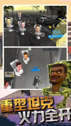 画风可爱,玩法简单,关卡短休闲游戏,具有主题时尚,使用方便,构思独特的优点。它简单地保留了远程、近战和防御三种类型的20多个摄像机角色,并用于抵抗100多个不同形状的僵尸厕所人。