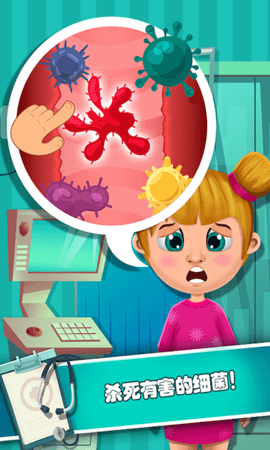 2、每个关卡都是不一样的病情,你要利用自己学到的知识对伤口进行处理,治好他们;