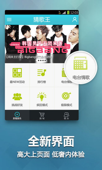 2013年凡趣科技正式发布史上最具挑战性的音乐对战游戏《猜歌王》手机版!在这里,喜欢音乐的小伙伴一定不要错过了,它还有三种模式:休闲、竞速、神秘,疯狂猜图等等这类游戏各种火爆,老歌新歌都有,游戏内含海量歌曲曲库,谁会的歌多吧~!!