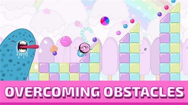 1、玩家需要控制甜甜圈,跑过各种障碍物,并且尽可能地获得更高的分数。