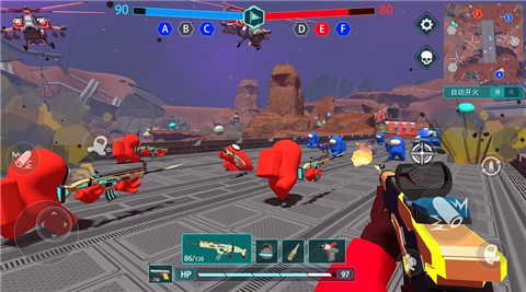 3、当带有角色的枪遇到敌人时,需要拉动机枪并射击所有敌人!