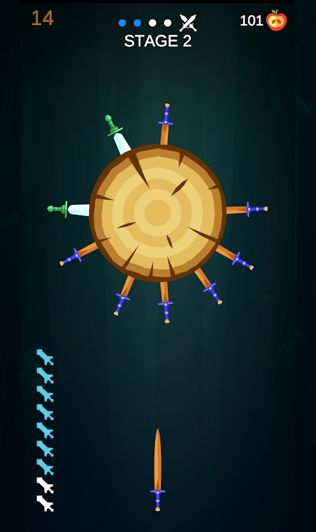 3、升级飞刀提升威力,还有很多的敌人等你挑战,不断解锁新的关卡,体验更刺激的对决。