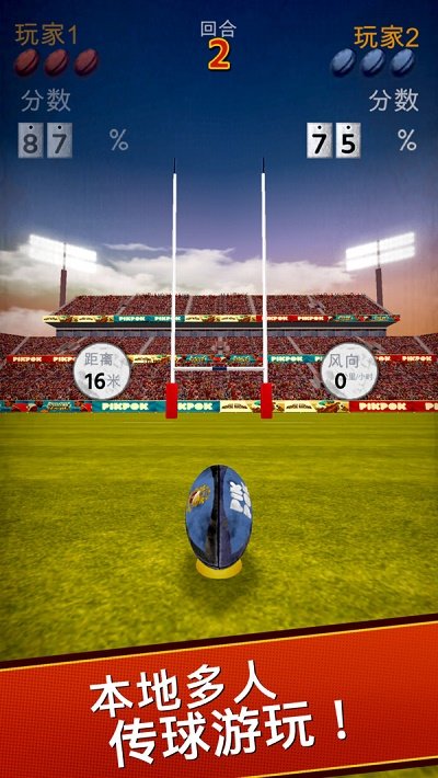 橄榄球开球最新免费版一款非常棒的体育竞速类游戏,拥有多个不同的模式可以参与,你可以与人机对战,考虑风速和力度的影响,它有着多种不同角色的选择搭配,玩家可以在其中体验到很有趣的橄榄球玩法,游戏非常有趣。