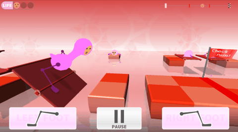 【右脚按键】点击的话右脚将向前迈步;【左脚按键】点击的话左脚将向前迈步;长按可以在迈步前调整走出很大一步。