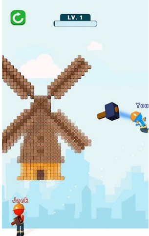 摧毁战斗游戏是一款具有非常好玩的休闲体育游戏,拿起你手中的锤子将看到的建筑物全部摧毁掉,如果你最近心情不好,不需要玩家有什么操作,游戏里面玩家需要控制自己的角色破坏阻碍自己前行的障碍,你甚至认为可以在游戏中向人类挥手,来摧毁更多的关卡吧!完成游戏任务的快感和喜悦都在这款游戏中了。