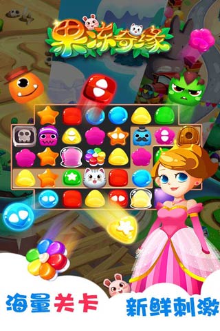 果冻奇缘是一款休闲益智类的消除游戏在果冻奇缘里充满奇幻色彩美丽的公主带着萌猫和粉兔闯进了果冻世界可恶的果冻怪为了阻拦她们前进设置了重重阻碍。她们能否成功闯过难关并且战胜BOSS关的继母你愿意与她们一起去冒险吗?