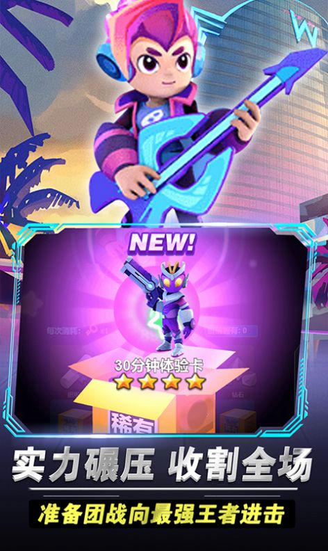 3、首次登录可以获得30分钟的体验卡,拥有四星的稀有角色,让你过把王者瘾。