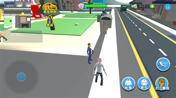 每天都有很多任务可以领取,从而进行升级、获取资金,拥有自己的房子和车子,轻松体验不一样的趣味打工乐趣。流浪打工模拟的画风也采用了最简单的色彩和建模,独特的3D设计让你的游戏体验更加轻松。
