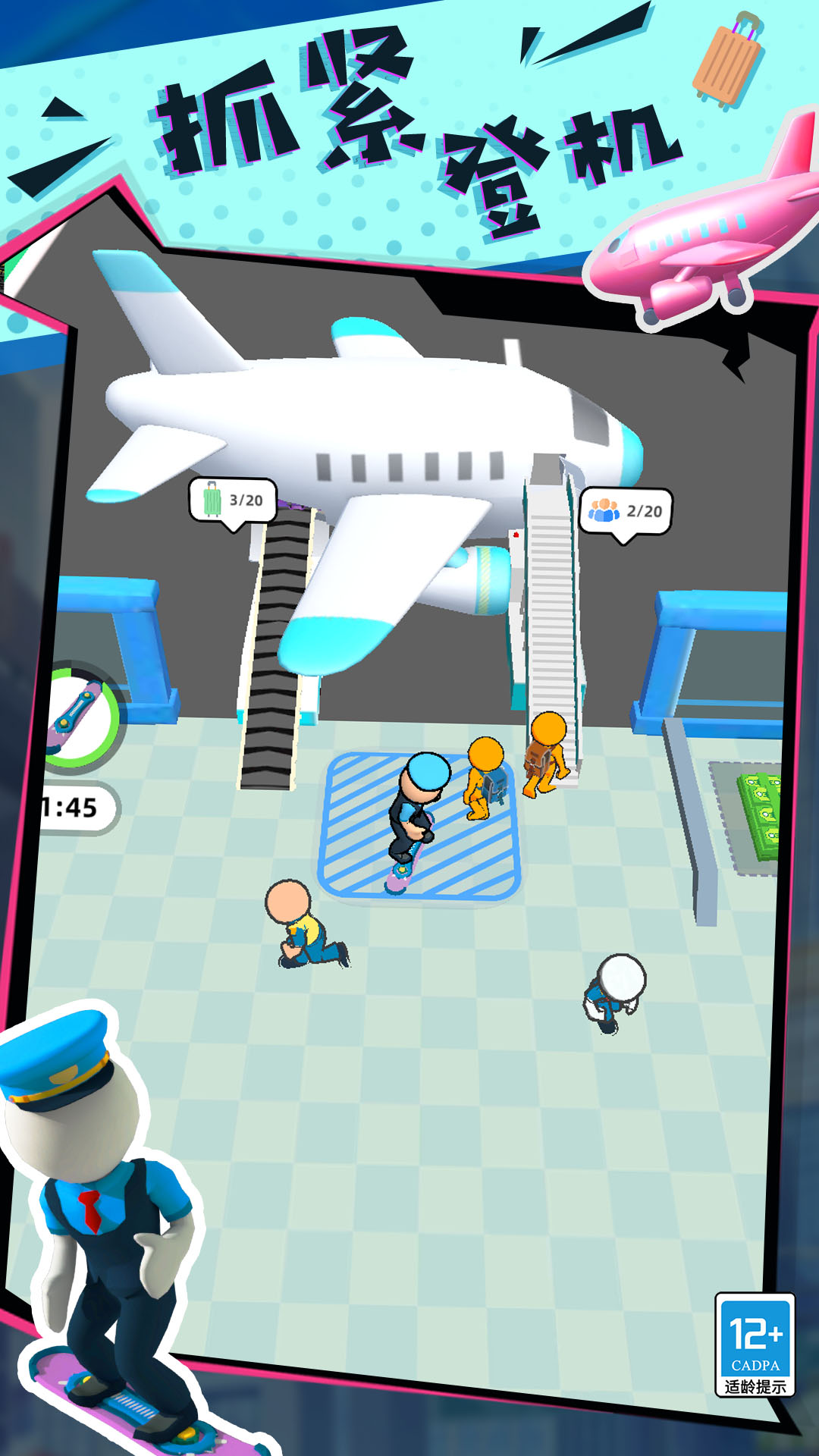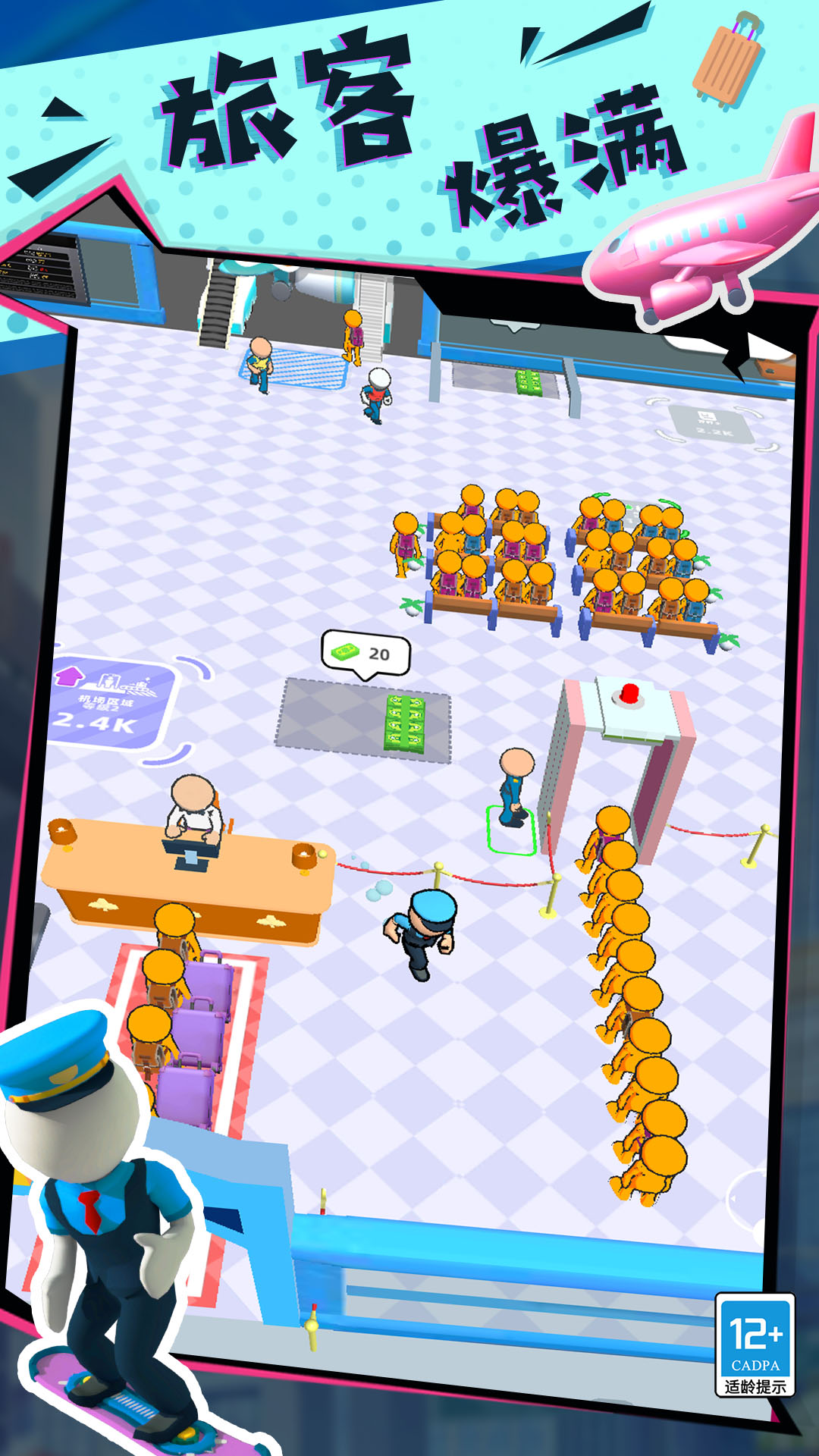 2、在这里,玩家作为机场地勤管理员,通过提供登机服务,检测安检。
