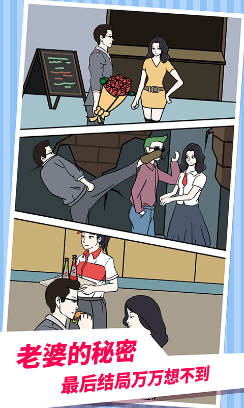 老公不在家游戏下载,老公不在家游戏是一款国产热门的趣味休闲益智游戏,老公不在家游戏这款高画质游戏采用了顶尖游戏引擎技术研发制作,魔性的剧情设计,非常刺激,手绘风的游戏风格,老公不在家的时候老婆似乎出轨了,找到老婆的秘密,相当有趣,走在楼下抬头一看,引起各种误会,于是顺着各种线索寻找老婆出入的地方,这款老公不在家游戏的画面风格精致简洁。更多好玩的模式技巧等你来下载探索。